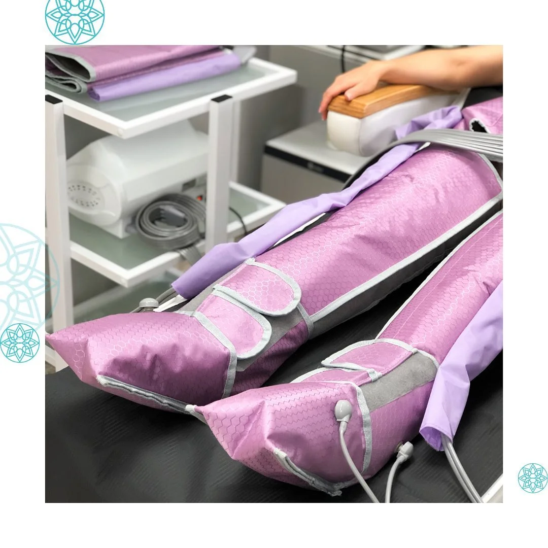 Do zabiegu wykorzystujemy specjalne mankiety, podzielone na komory, w których umieszcza się zmęczone nogi, ramiona lub brzuch. Urządzenie wtłacza powietrze w kolejne sektory, dzięki czemu wytwarza podciśnienie – to ono jest odpowiedzialne za manualne pobudzenie układu limfatycznego.